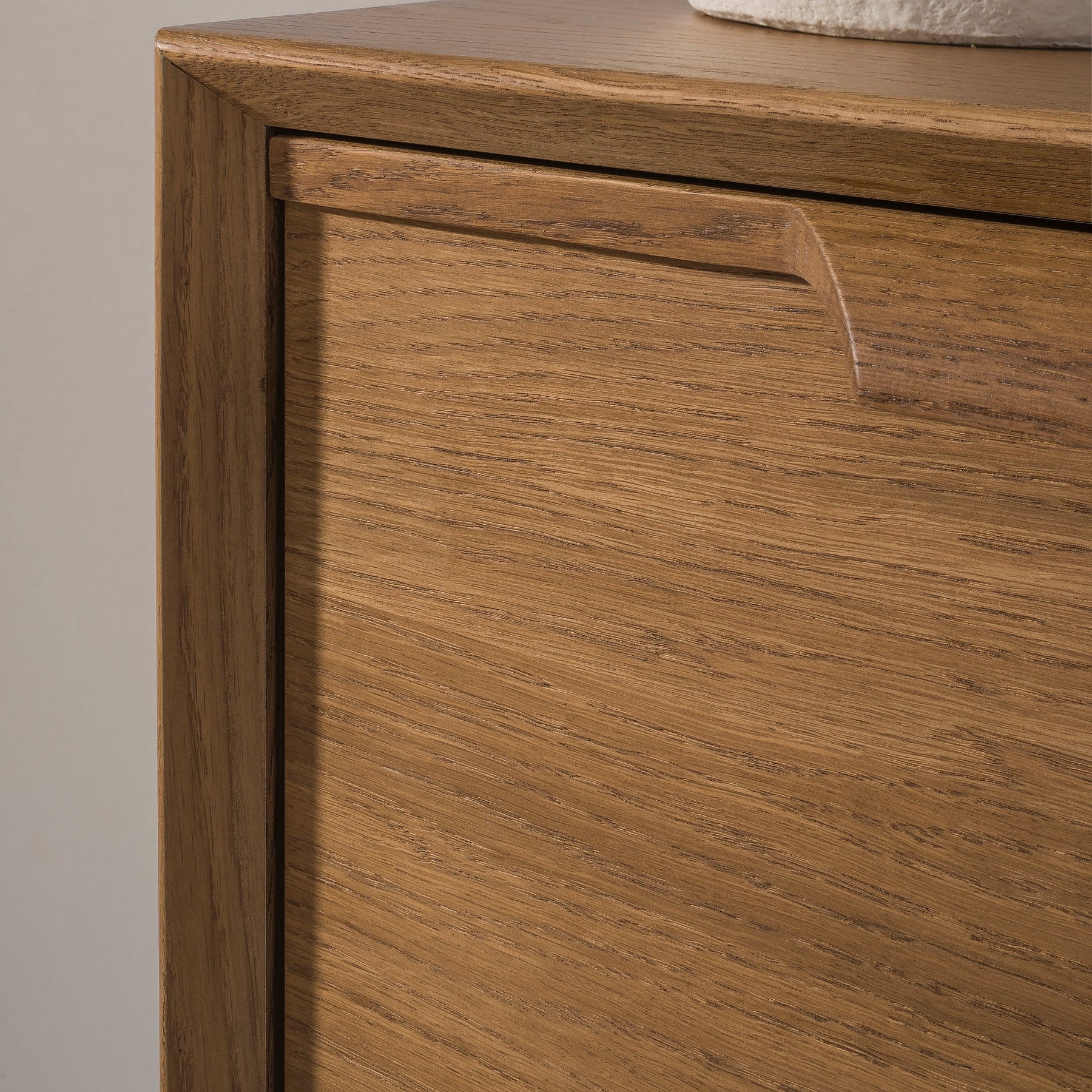 Sus líneas limpias, patas inclinadas y tiradores integrados crean una estética ligera y equilibrada, perfecta para quienes buscan calidez sin renunciar a la modernidad.
